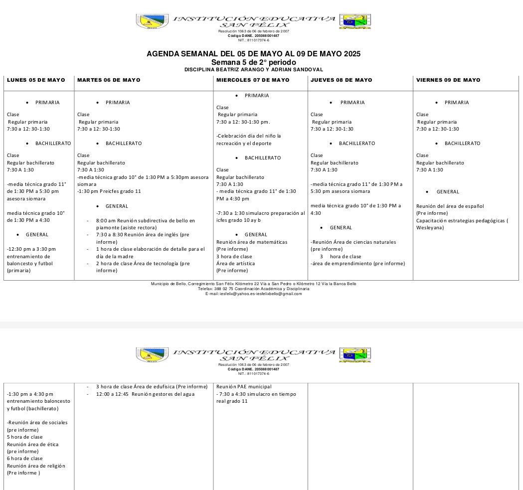 1️⃣5️⃣ AGENDA SEMANAL (Del 05 al 09 de mayo) ⤵️