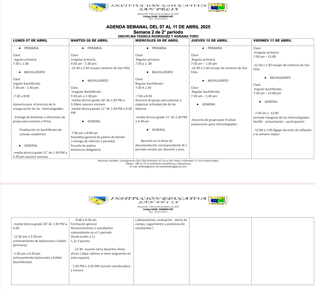 1️⃣2️⃣ AGENDA SEMANAL (Del 07 al 11 de abril) ⤵️