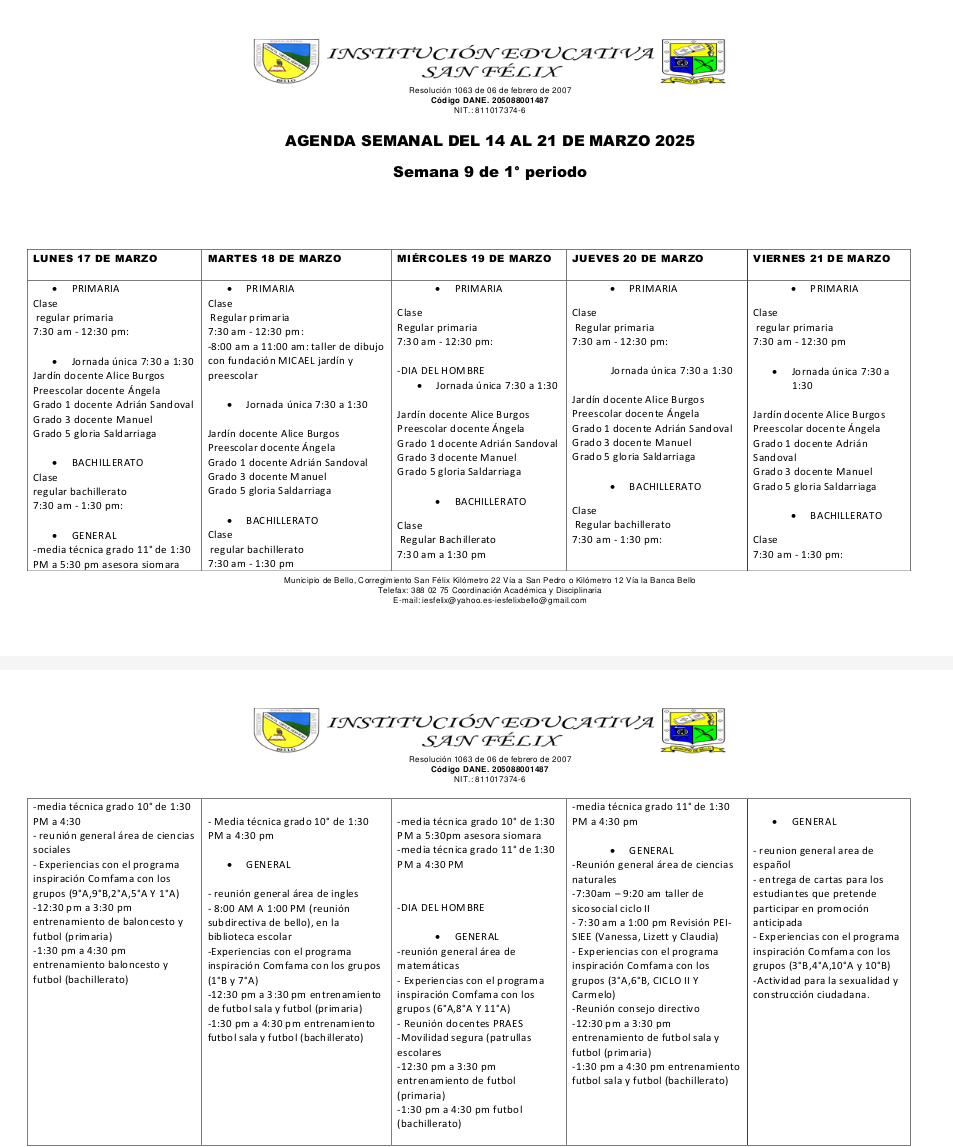 0️⃣9️⃣ AGENDA SEMANAL (Del 17 al 21 de marzo) ⤵️