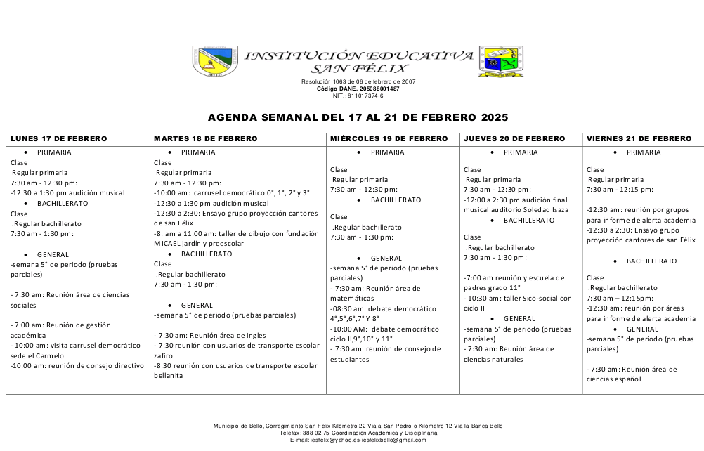 0️⃣5️⃣ AGENDA SEMANAL (Del 17 al 21 de febrero) ⤵️