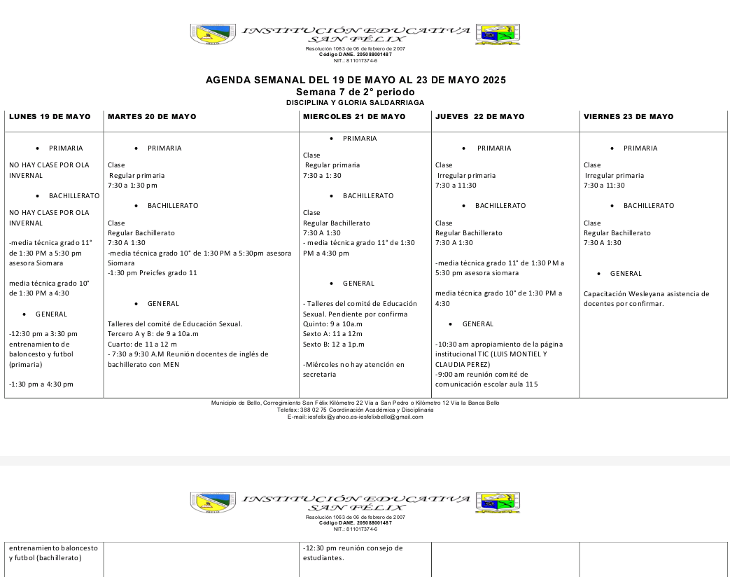 1️⃣7️⃣ AGENDA SEMANAL (Del 19 al 23 de mayo) ⤵️