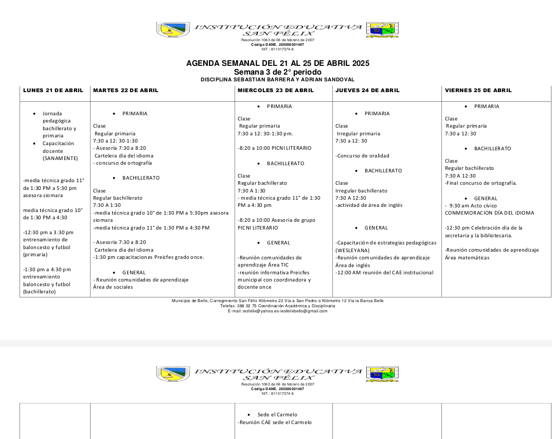 1️⃣3️⃣ AGENDA SEMANAL (Del 21 al 25 de abril) ⤵️