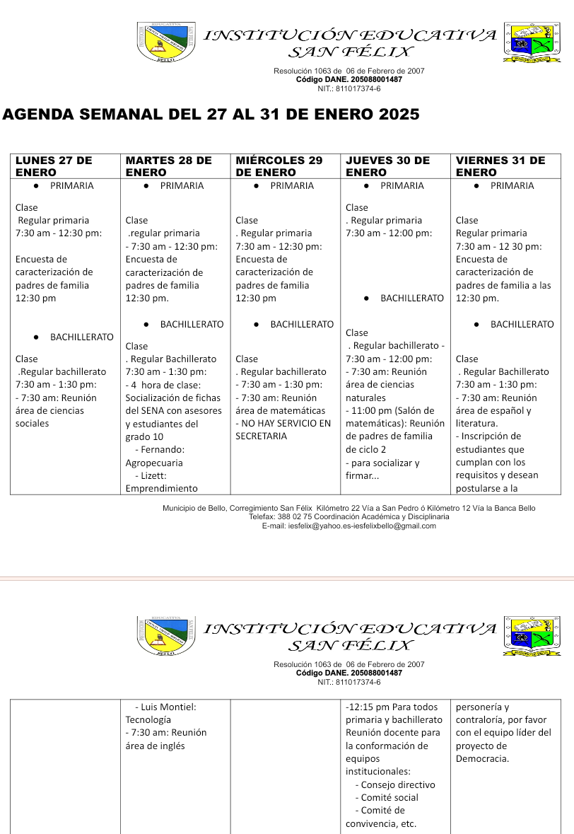 0️⃣2️⃣ AGENDA SEMANAL (Del 27 al 31 de enero) ⤵️