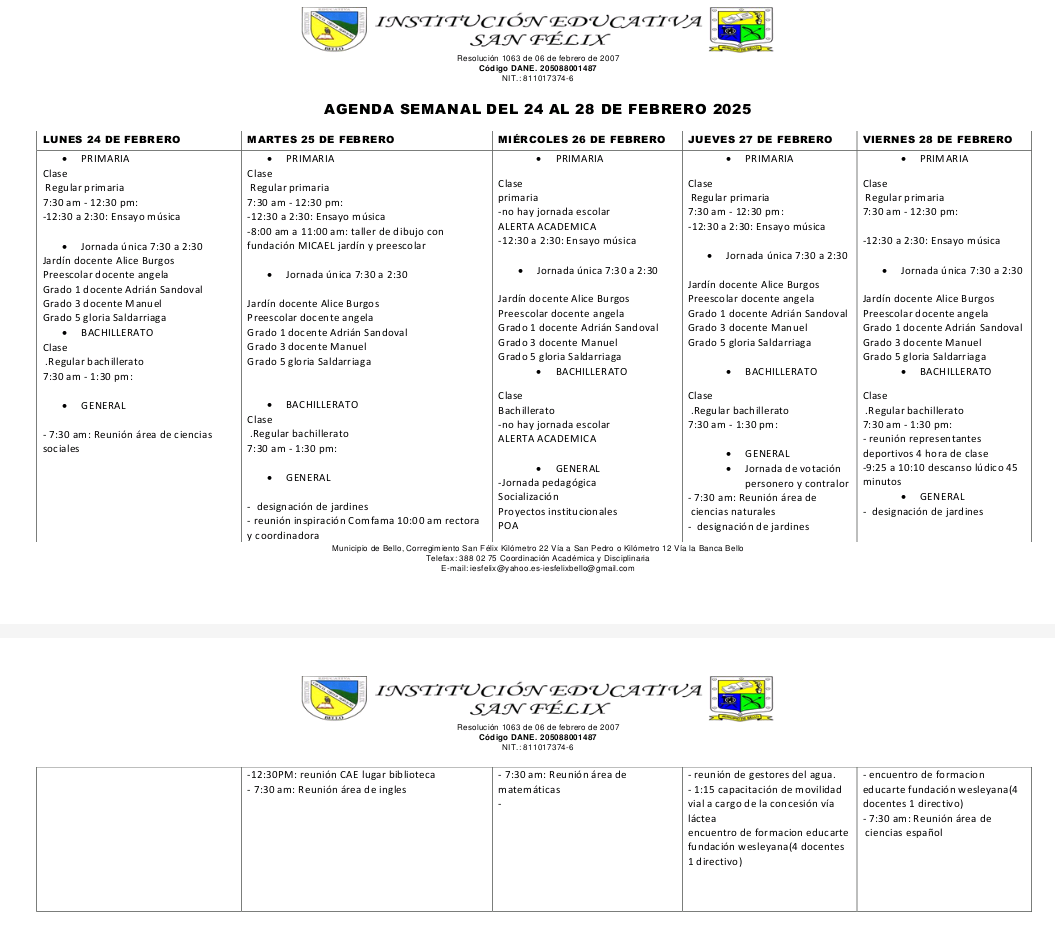 0️⃣6️⃣ AGENDA SEMANAL (Del 24 al 28 de febrero) ⤵️