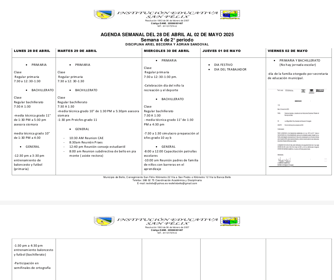 1️⃣4️⃣ AGENDA SEMANAL (Del 28 de abril al 02 de mayo) ⤵️
