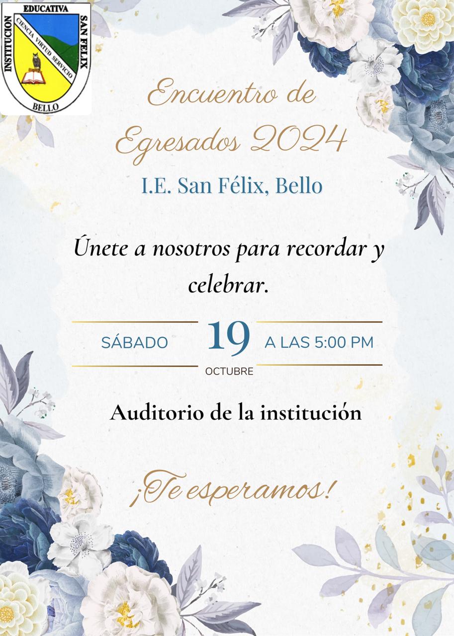 APRECIADOS EGRESADOS DE NUESTRA INSTITUCIÓN Publicado: 02 Octubre 2024 Escrito por Super User Categoría: Uncategorised
